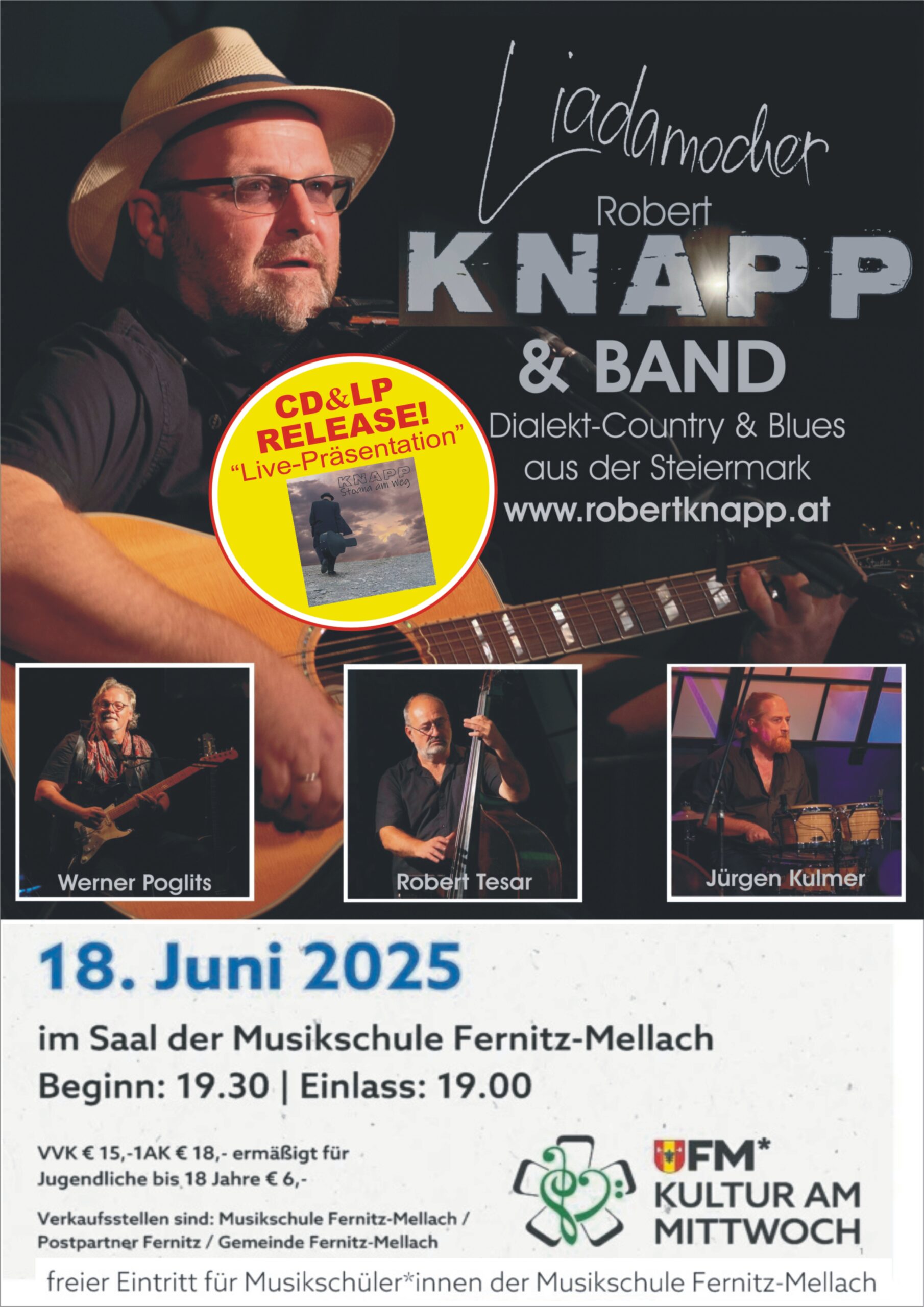 Plakat FERNITZ 18.Juni 2025 Veröffentlicht 06/04/2025 am 1810 × 2560 in ROBERT KNAPP & BAND IN FERNITZ (LP+CD-PRÄSENTATION)