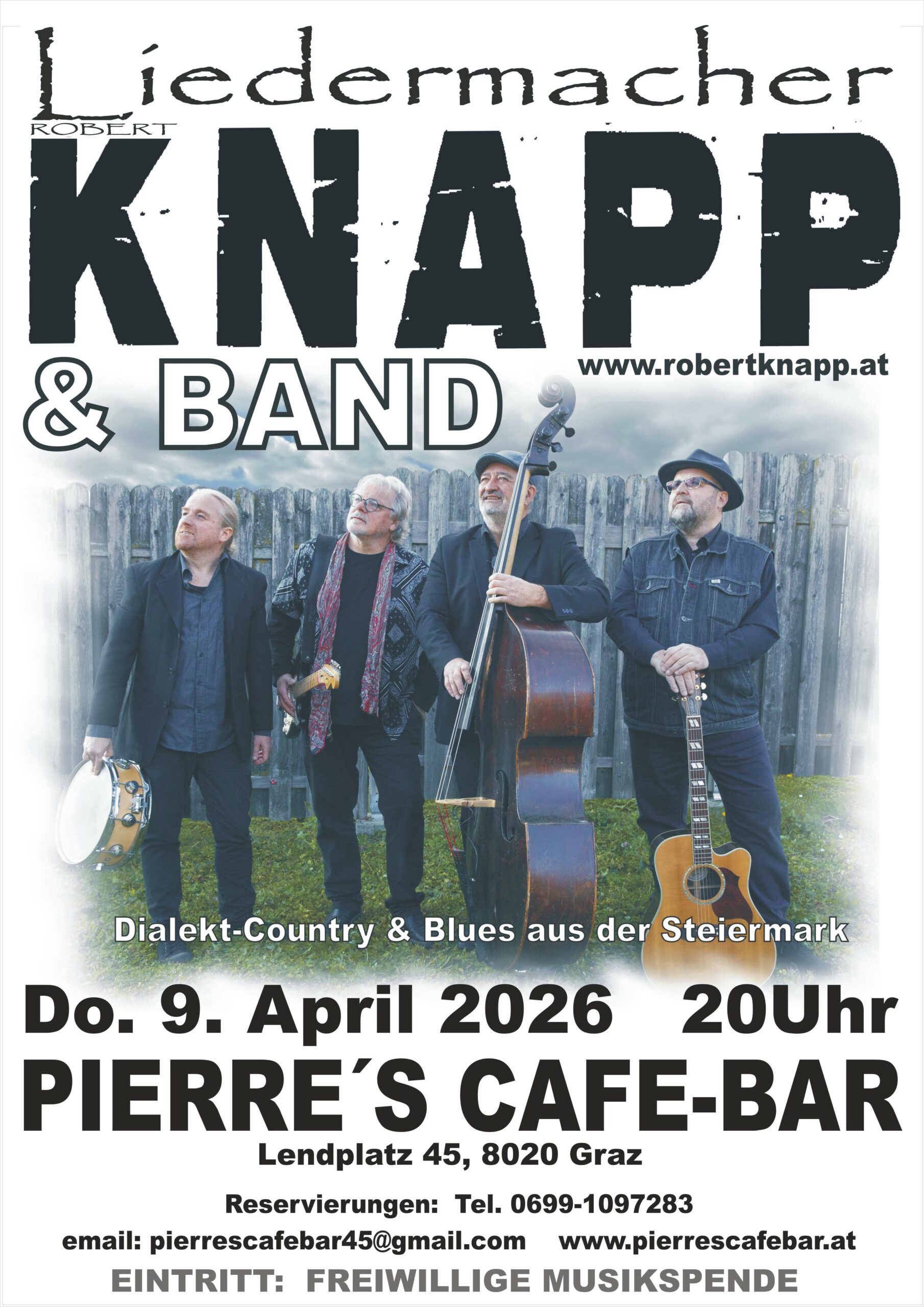 Plakat PIERRES 2026 Veröffentlicht 09/01/2026 am 1810 × 2560 in ROBERT KNAPP & BAND IM PIERRES CAFE-BAR GRAZ