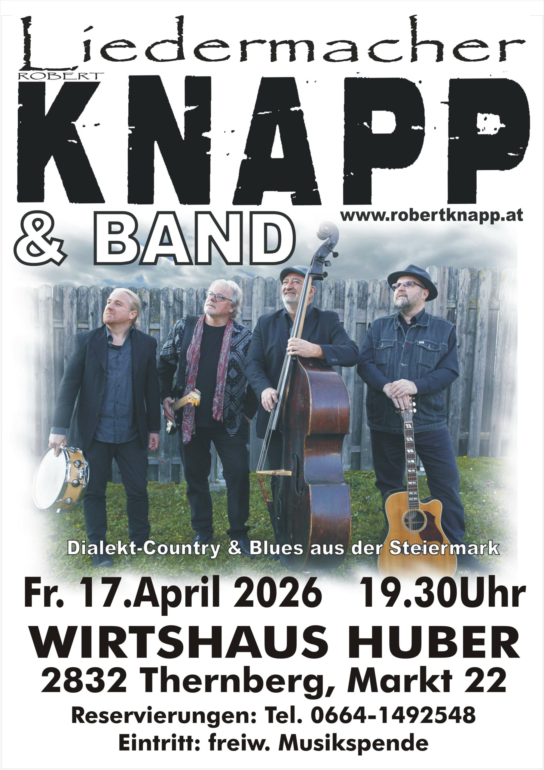 Plakat Huber Thernberg 17.4.26 Veröffentlicht 03/01/2026 am 1810 × 2560 in ROBERT KNAPP & BAND IM WIRTSHAUS HUBER